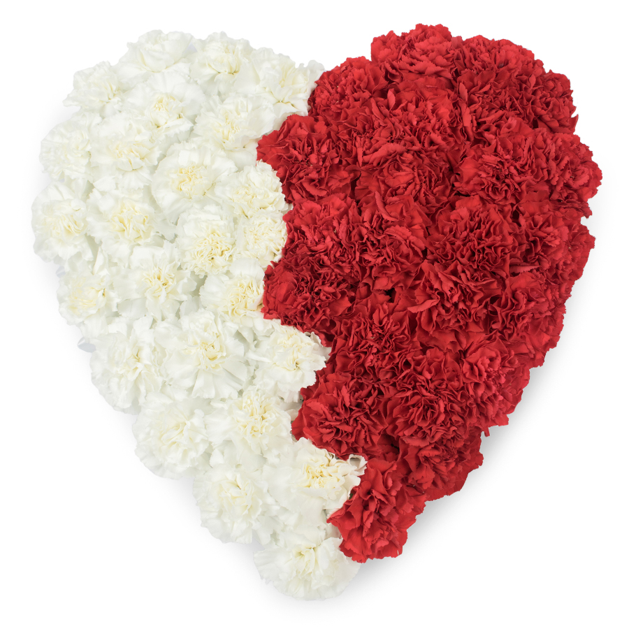 Express your heartfelt emotions with our beautiful heart-shaped mixed carnations bouquet, featuring a harmonious blend of white and red carnations. Each bloom is hand-selected to ensure maximum freshness and quality, making this arrangement a luxurious and meaningful gift.